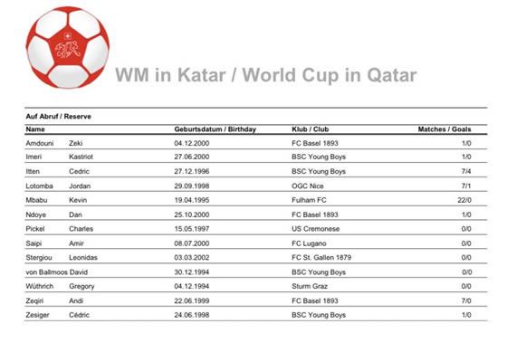 Murat Yakin hat insgesamt 26 Spieler für die WM in Katar nominiert. Am Dienstag hat er diese informiert – und auch jene Profis, die es knapp nicht ins Kader geschafft haben. 13 Spieler stehen auf der Pikettliste und könnten noch zum Handkuss kommen, falls es zu Verletzungen kommt.